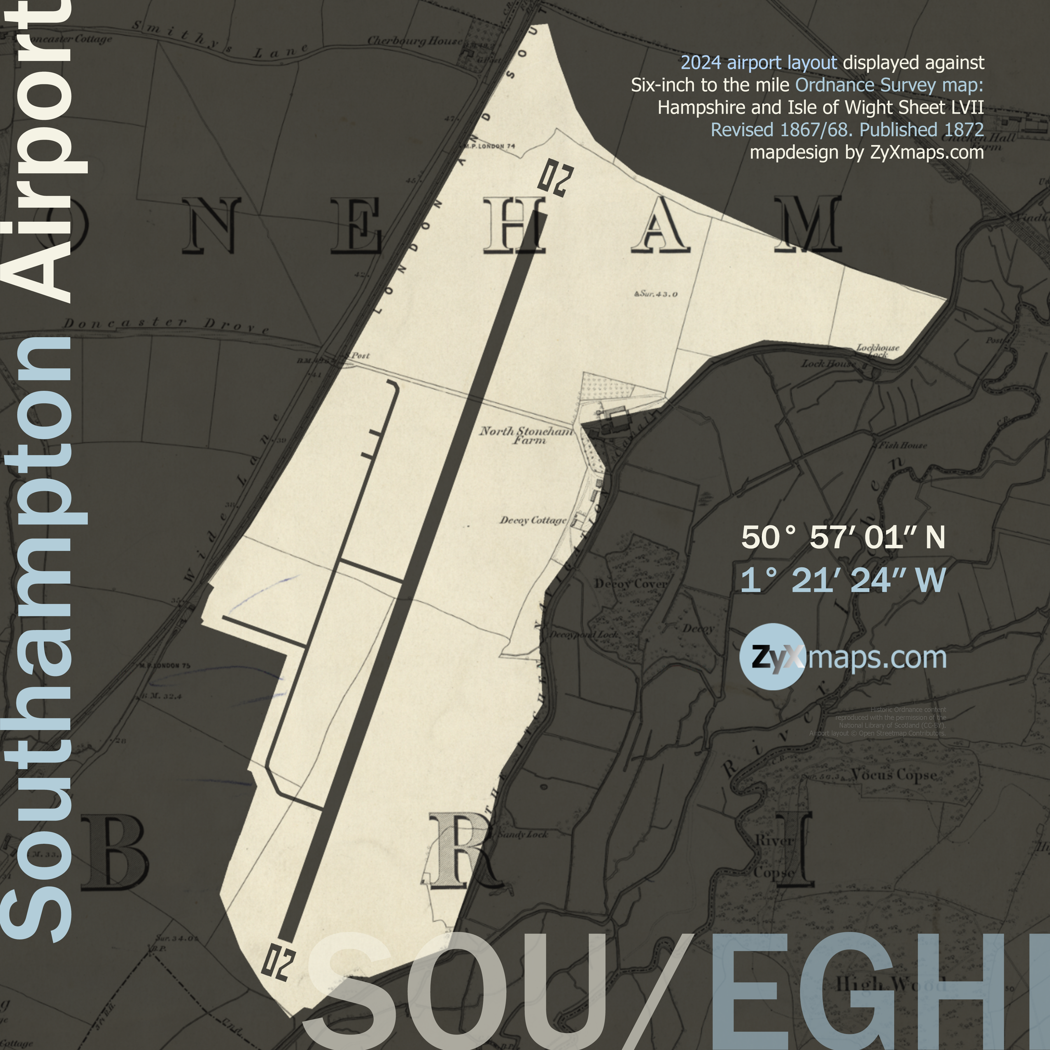 Historic Ordnance Survey mapping used for ZyXmaps’s ‘UK airport landscapes’ series is reproduced with the permission of the National Library of Scotland (CC-BY). Airport layout © Open Streetmap Contributors. Photographs © edition ND.